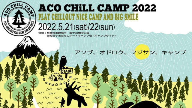 5月21日、22日に富士山樹空の森にて開催されるACO CHiLL CAMP 2022に出店します。